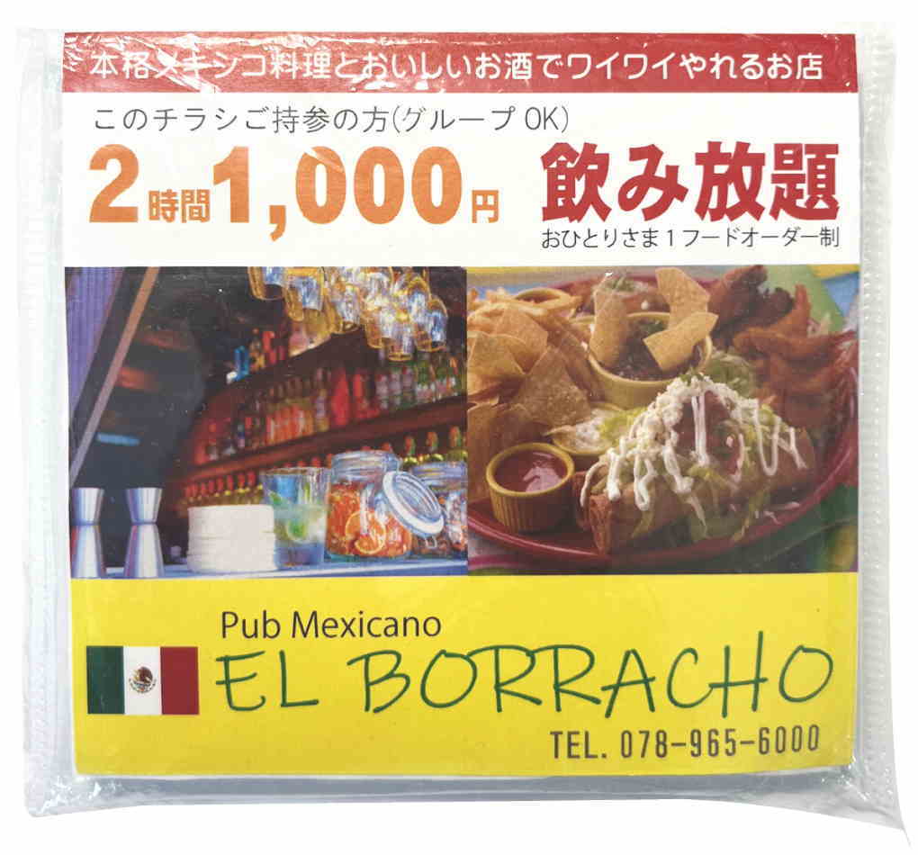 ポケットティッシュに封入するラベルは片面フルカラー対応。ラベル用紙はコート紙を使用していますので発色が鮮やかな仕上がりです。