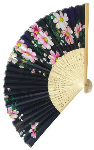 黒竹は扇子骨を黒く染めたタイプ。黒基調はもちろん、鮮やかなデザインにもよく映えます。