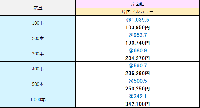 片面フルカラー 100本 103,950円[税込]~