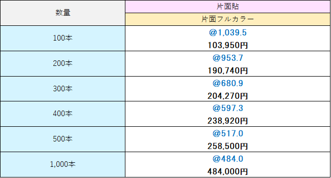 片面フルカラー 100本 103,950円[税込]~